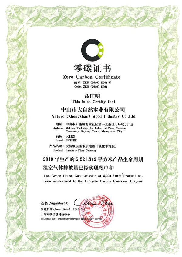 2021年9月14日,中國質量認證中心(CQC)向大自然家居頒發《碳中和證書》,標志著大自然家居成為中國家居行業首個實現碳中和的“燈塔”企業。