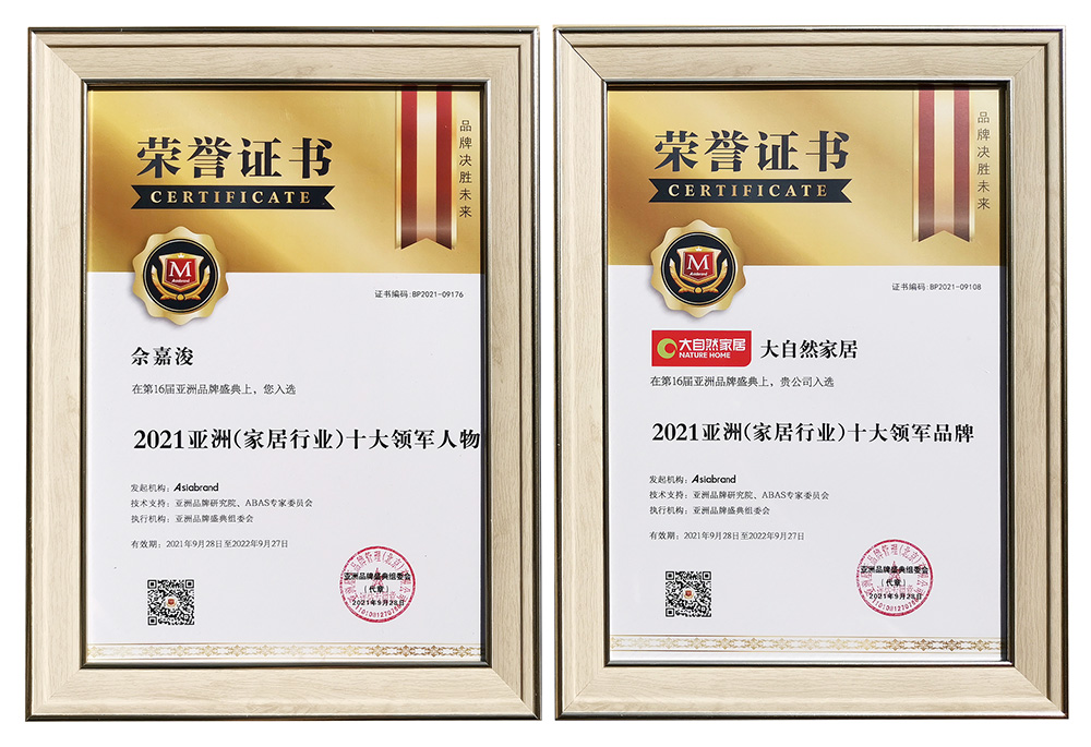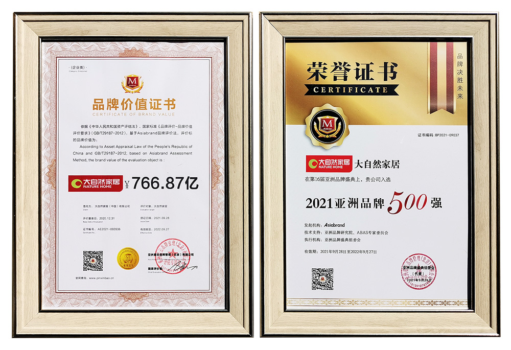亞洲品牌研究院創始院長、ABAS專家委員會常務副主席周君隆重發布了“2021亞洲品牌500強排行榜”并對榜單作了分析報告。大自然家居憑借強勁實力入圍“2021亞洲品牌500強”榜單,同步入圍的企業包括華為、三星、騰訊、阿里巴巴等。大自然家居在本屆盛典斬獲3項大獎,“2021亞洲品牌500強”、“2021年度“亞洲(家居行業)十大領軍品牌”,集團副總裁佘嘉浚先生獲“亞洲(家居行業)十大領軍人物”。值得一提的是,大自然家居自2018年至今已連續四年入圍“亞洲品牌500強”榜單,品牌價值也從2018年的502.8億元躍至2021年的766.87億元。
