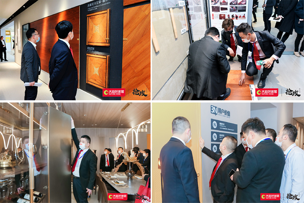 26日當晚,大自然家居新品展示及訂貨會在大自然總部展廳舉辦。各大品類新品在大自然各大展廳驚喜亮相,大自然匠心打造的顏值與品質并存的產品獲得經銷商代表們的一致好評。