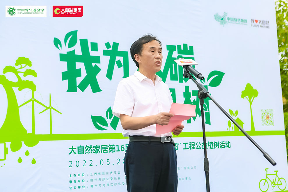 現(xiàn)場(chǎng),江西省林業(yè)局二級(jí)巡視員胡加林、贛州市南康區(qū)區(qū)委書記何善錦、贛州市林業(yè)局局長(zhǎng)葉日山、贛州市南康區(qū)人大主任賴彥辰、贛州市南康區(qū)政協(xié)主席鐘恢森、江西省林業(yè)局三級(jí)調(diào)研員劉強(qiáng)、大自然家居(中國)有限公司董事會(huì)主席佘學(xué)彬、大自然家居(中國)有限公司董事會(huì)副主席袁順意、大自然家居(中國)有限公司集團(tuán)CEO 朱鳳濤、南康區(qū)四套班子相關(guān)領(lǐng)導(dǎo)、干部職工代表、大自然家居高層管理團(tuán)隊(duì)成員、新聞媒體記者以及愛心環(huán)保志愿者們等參加了本次活動(dòng)。