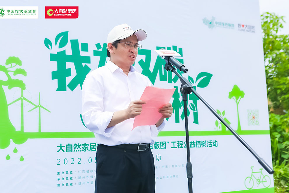 活動(dòng)現(xiàn)場(chǎng),大自然家居董事長(zhǎng)佘學(xué)彬發(fā)表致辭,他指出,一直以來,大自然都秉持熱愛自然,造福社會(huì)的理念,堅(jiān)決擁抱“雙碳”戰(zhàn)略目標(biāo),倡導(dǎo)綠色低碳生活,堅(jiān)持植綠護(hù)綠增加碳匯,堅(jiān)持節(jié)能減排和綠色產(chǎn)業(yè)發(fā)展等一系列生態(tài)建設(shè)。