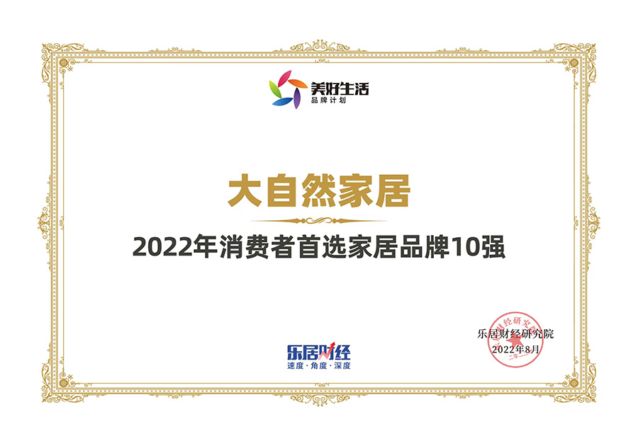 近日,以“追光”為主題的2022(第五屆)樂居財經年度論壇暨財經之夜在杭州落地。在現場,大自然家居榮獲“2022年消費者首選家居品牌10強”、大自然家居王道偉榮獲2022工匠先鋒提名獎。