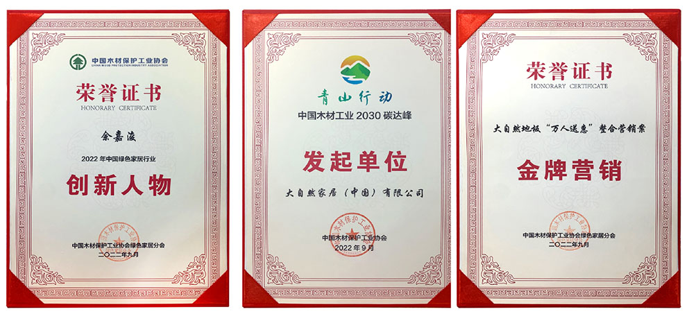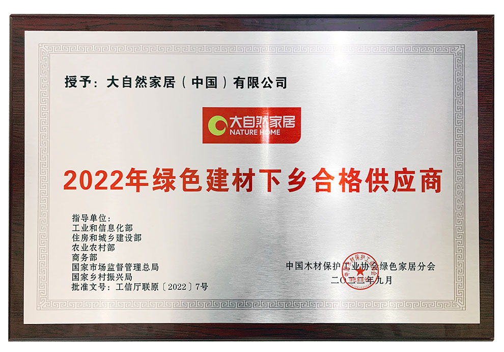 在新政策指引下,融合創新、數字化和綠色化轉型、智能家居是關鍵詞,綠色發展已然成為家居行業發展的新方向,不少家居企業在產品上提出綠色健康環保概念,尋找自己的綠色可持續發展之路。早在今年6月,大自然家居就得到中國建材流通協會認定,入選“2022年全國綠色建材下鄉推薦品牌”,而在9月7日,大自然家居再獲中國木材保護工業協會認定“2022年全國綠色建材下鄉合格供應商”,在綠色發展領域走在了行業的前列。