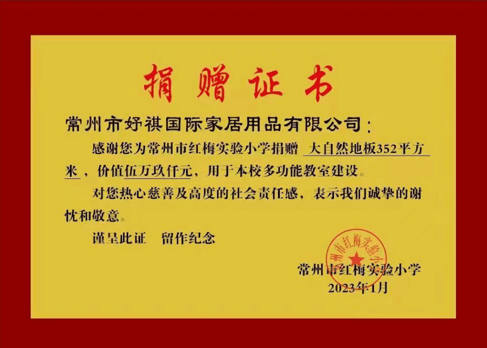 少年兒童是祖國的未來,民族的希望;守護學生健康安全,是國家、學校乃至社會的共同牽掛與責任。在2023年開春之際,江蘇常州大自然地板為當地鳳凰新城實驗小學、紅梅小學進行了愛心捐贈,以健康地板守護兒童健康學習,助力校園建設。