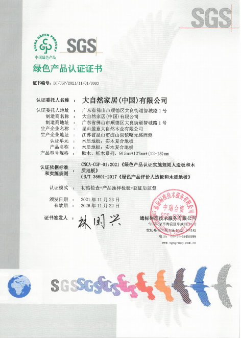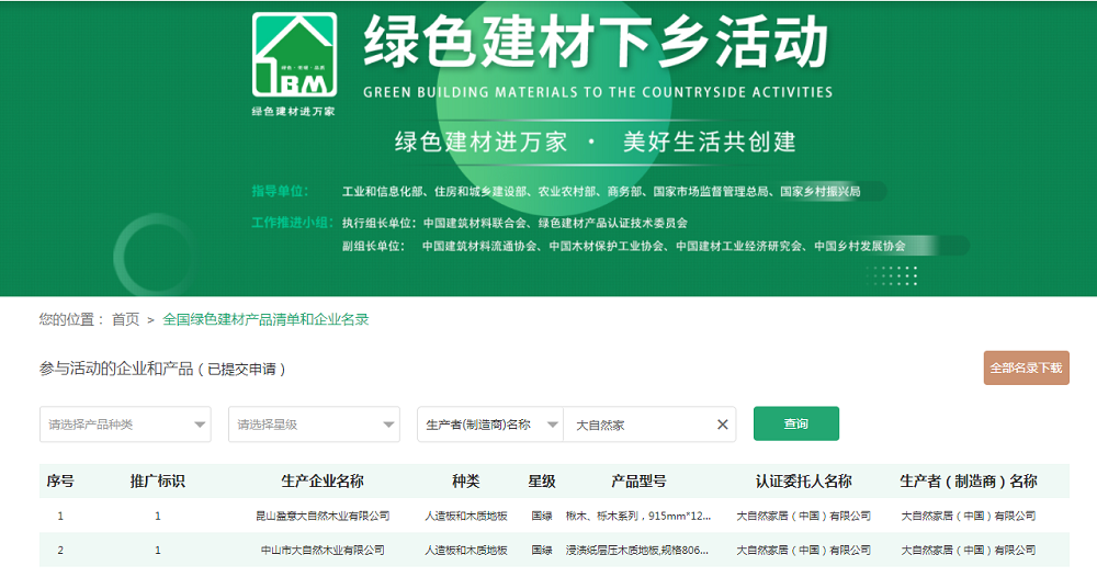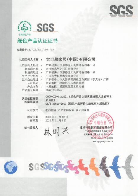 綠色建材下鄉(xiāng)對于入選產(chǎn)品有著嚴(yán)苛的審核標(biāo)準(zhǔn),入選產(chǎn)品必須是在全生命周期內(nèi)可減少對天然資源消耗和減輕對生態(tài)環(huán)境影響,具有“節(jié)能、減排、安全、便利和可循環(huán)”特征的建材產(chǎn)品。2021年,大自然強化地板、實木復(fù)合地板憑借環(huán)保基材和環(huán)保工藝技術(shù),經(jīng)過專業(yè)檢測機構(gòu)的層層檢測與認(rèn)證,獲得了綠色產(chǎn)品認(rèn)證證書。該證書是證明企業(yè)的產(chǎn)品在全生命周期中均符合綠色發(fā)展理念,也是綠色建材下鄉(xiāng)的重要通行證。