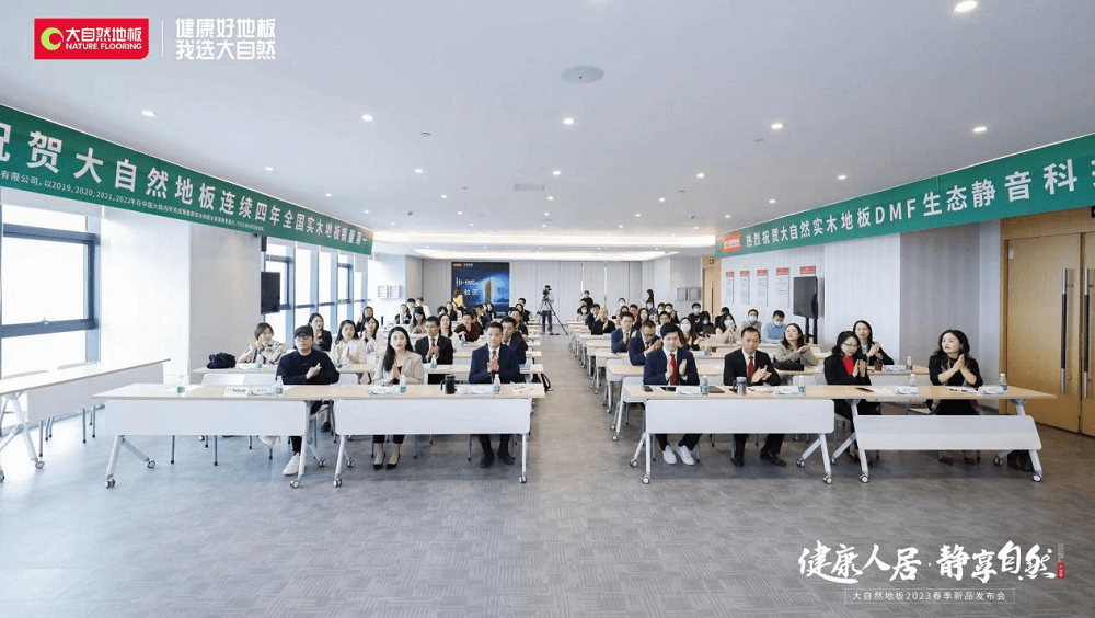 2023年3月15日,“健康人居 靜享自然”大自然地板2023春季新品發(fā)布會(huì)在佛山順德大自然家居總部隆重舉行。隨著“健康中國(guó)2030”戰(zhàn)略和“十四五”規(guī)劃的穩(wěn)步推進(jìn),健康人居話題備受關(guān)注。在此大背景下,大自然地板從健康人居出發(fā),在中國(guó)林產(chǎn)工業(yè)協(xié)會(huì)大力支持下重磅發(fā)布《大自然家居綠色產(chǎn)品白皮書(shū)》、在大自然家居研究院潛心研發(fā)下重磅發(fā)布DMF生態(tài)靜音科技新品,推動(dòng)行業(yè)健康升級(jí),為消費(fèi)者構(gòu)建更加環(huán)保的健康家居生活。