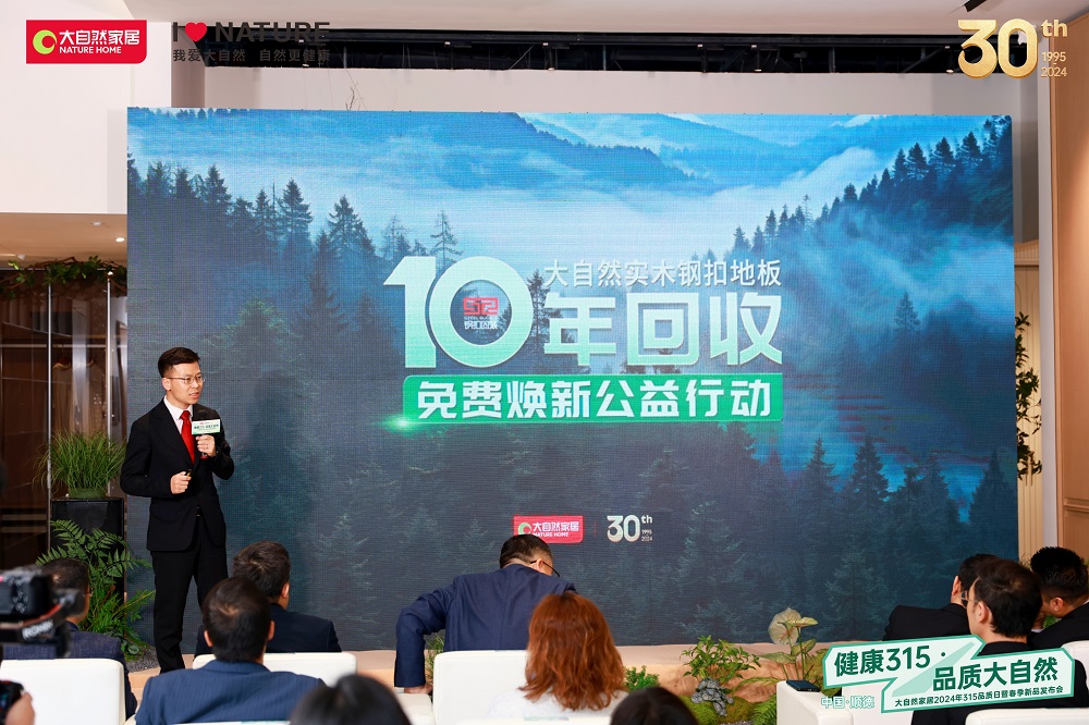 發布會上,大自然家居宣布推出“大自然實木鋼扣地板十年回收免費煥新”公益活動,旨在倡導綠色環保生活理念,并為消費者提供更加貼心的售后服務。
