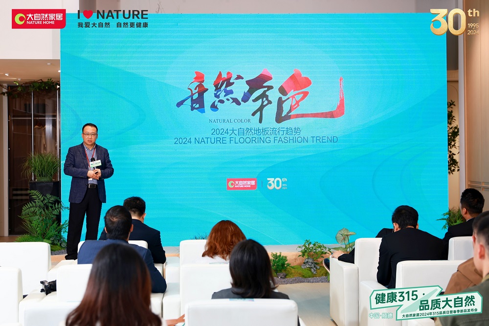 (大自然家居產品企劃部總監袁廣進發布“自然本色”2024大自然地板流行趨勢)