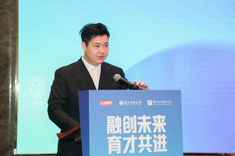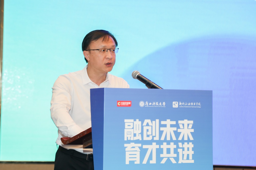 大自然家居(中國)有限公司董事、常務副總裁佘嘉浚,代表共同體牽頭單位進行了發言。佘嘉浚指出大自然家居作為行業頭部企業,在家居領域擁有30年經驗,專注于綠色健康家居產品的研發、生產和銷售,在國內有超過5000家線下門店。品牌價值在2023年達到876.12億元(由亞洲星云品牌管理(北京)有限公司評定)。大自然家居在國內柳州、鹿寨等地布局了6個大型生產基地,在國外東盟柬埔寨、南美秘魯、非洲加蓬、歐洲法國、波蘭等國家布局有大型生產基地,有超過10萬生產、服務和技術工人。作為家居頭部企業,知責于心、擔責于身、履責于行,積極響應國家政策,牽頭行業產教融合共同體的建設,旨在培養更多適應產業發展需要的高素質人才,同時賦能區域經濟和家居行業的發展。