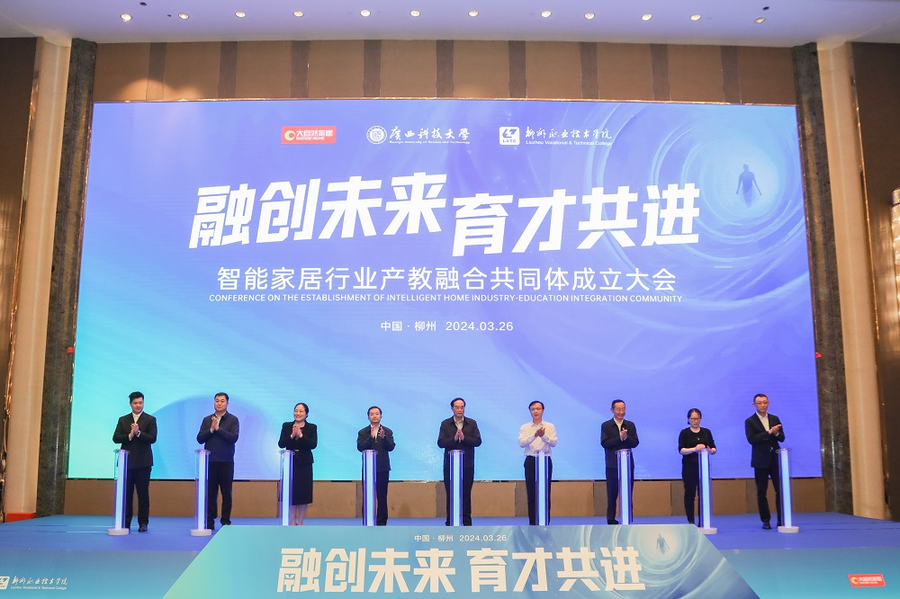 2024年3月26日,由中國林產工業協會、廣西壯族自治區工業和信息化廳、廣西壯族自治區林業局指導,大自然家居(中國)有限公司、廣西科技大學和柳州職業技術學院牽頭,聯合行業組織、科研機構、學校以及企業等68家單位,發起的“融創未來、育才共進” 智能家居行業產教融合共同體(以下簡稱“共同體”)成立大會在廣西柳州隆重舉行。大自然家居(中國)有限公司、廣西科技大學、柳州職業技術學院為理事長單位,中國林業科學研究院木材工業研究所、廣西大學、廣東萬和電器集團等為副理事長單位,柳州工學院、柳州城市職業學院、廣西豐林木業集團等作為會員單位,多方合作,旨在推動智能家居產業發展,促進產學研深度融合,培養高素質人才,推動行業創新發展。